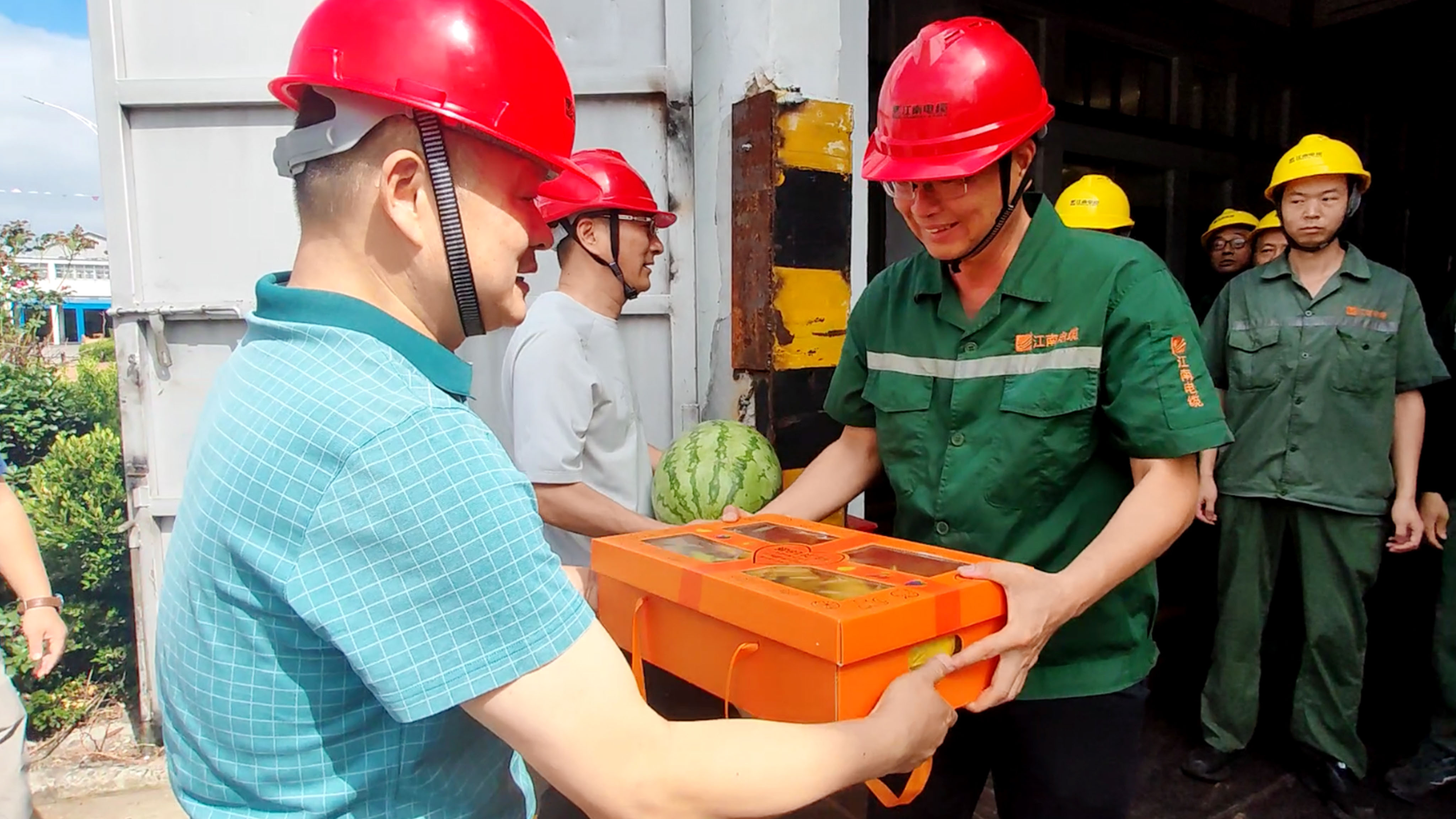 副總經理周駿、總經理助理陸建平赴防火鋁線電纜分廠九車間送清涼